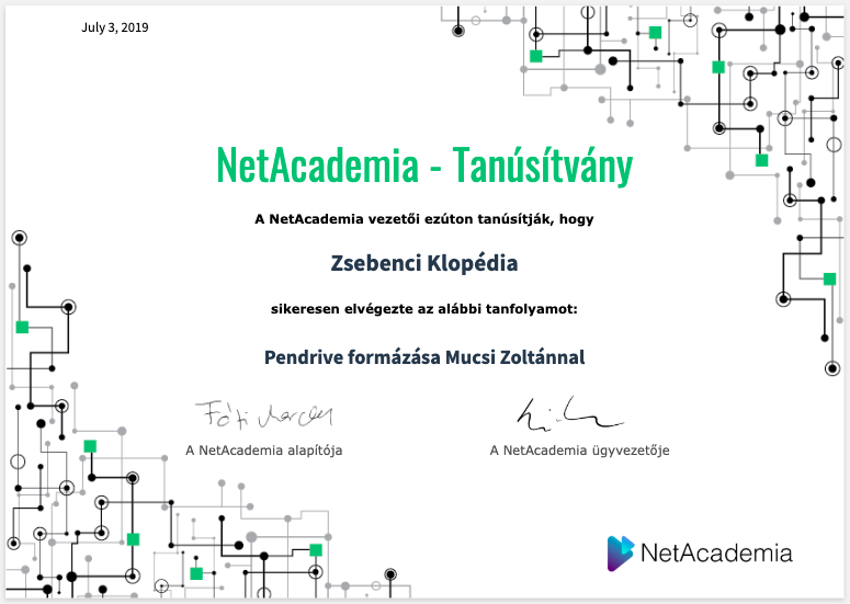 Első Netakadémia tanúsítványom